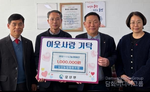 시민행정신문 강갑수 기자 | 홍성군은 갈산농협이 갈산면을 통해 이웃돕기 성금 100만 원을 기탁하며 지역사회 나눔 실천에 동참했다고 밝혔다.