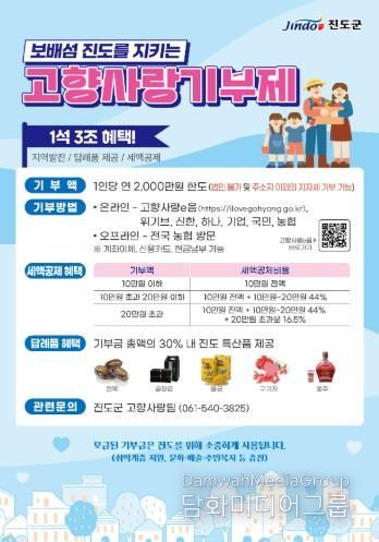 진도군은 2025년 고향사랑기부제를 통해 총 6억 9,900만 원의 기부금을 모금했다.
