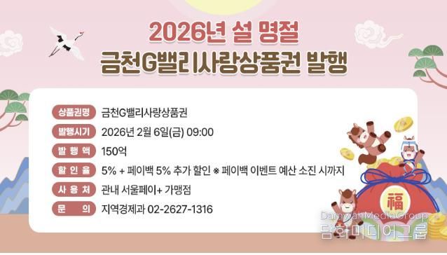 한편, 구가 지난해 9월 추석 명절에 발행한 금천G밸리사랑상품권은 단기에 완판되며, 구민과 소상공인 모두에게 큰 호응을 얻은 바 있다.