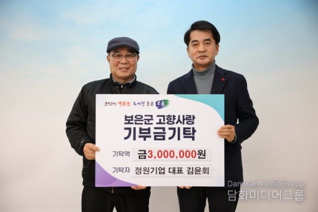 경기도 김포시에서 맨홀 안전 사다리 생산업체 ‘정원기업’을 운영 중인 김윤회 대표는 2일 보은군청을 방문해 고향사랑기부금 300만 원을 기탁했다.