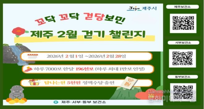 시민행정신문 기자 | 제주시는 시민들의 일상 속 걷기 실천을 활성화하기 위해 오는 2월부터 ‘꼬닥꼬닥 걷당보민’ 건강 걷기 챌린지를 운영한다.