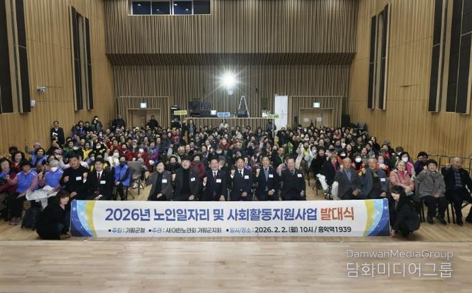 가평군은 이날 오전 음악역1939 1층에서 ‘2026년 노인일자리 및 사회활동지원사업 발대식’을 개최했다. 행사에는 서태원 가평군수를 비롯해 가평군의회 의장과 군의원, 대한노인회 가평군지회 관계자, 노인일자리 참여 어르신 등 약 250명이 참석해 사업 시작을 함께했다.