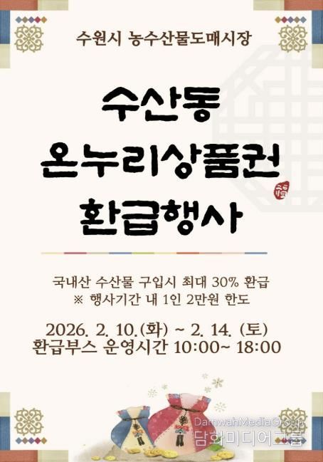 시민행정신문 강갑수 기자 | 수원시농수산물도매시장 수산동이 설을 맞아 2월 10일부터 14일까지 온누리상품권 환급 행사를 연다.