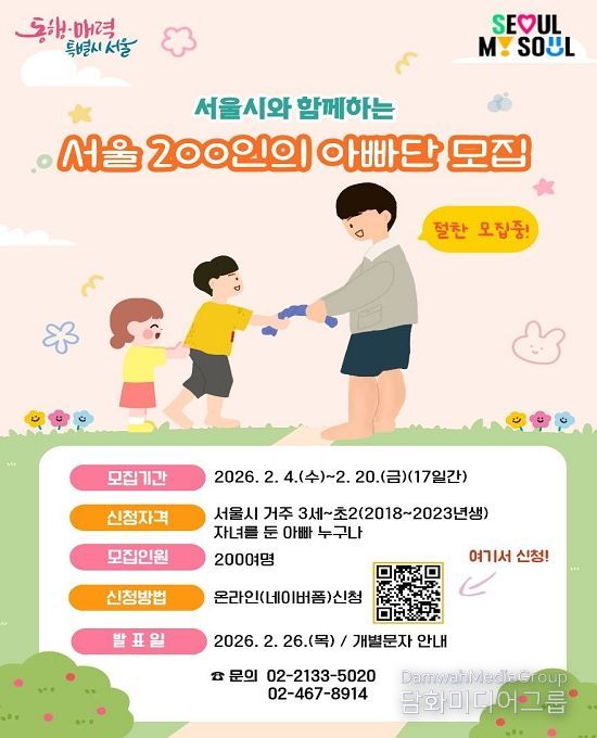 서울시는 ‘서울 200인의 아빠단’ 참여자를 2월 4일부터 20일까지 17일간 모집한다고 밝혔다.
