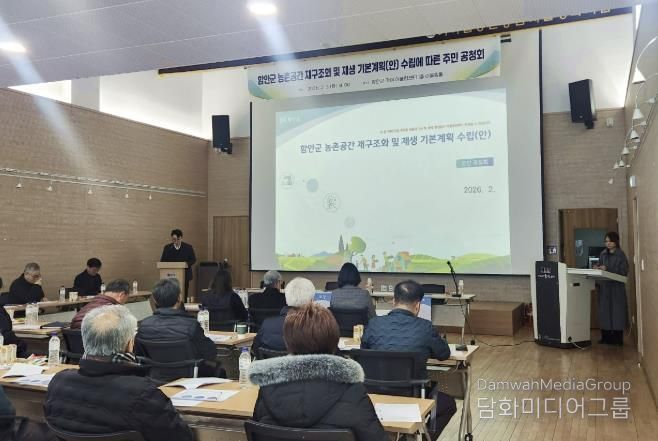 시민행정신문 강갑수 기자 | 함안군은 지난 3일 가야읍 어울림센터 1층 어울림홀에서 농촌공간의 체계적인 발전과 지속 가능한 농촌 조성을 위한 ‘농촌공간 재구조화 및 재생 기본계획(안)’ 주민공청회를 열고 주민 의견 수렴에 나섰다고 밝혔다.