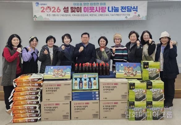 시민행정신문 강갑수 기자 | 영통구 영통1동은 지난 3일 영통1동 단체장협의회가 설 명절을 앞두고 관내 저소득 이웃을 위한 ‘설 맞이 이웃사랑 나눔 전달식’을 진행했다고 밝혔다.