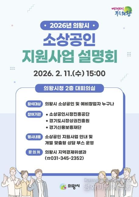 시민행정신문 강갑수 기자 | 의왕시가 2월 11일 오후 3시, 시청 대회의실에서 ‘2026년 소상공인 지원사업 설명회’를 개최한다.