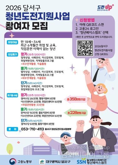 한편 달서구는 2021년부터 고용노동부 청년도전지원사업 공모에 선정돼 현재까지 구직단념 지역 청년 1,275명을 발굴·지원해 왔으며, 지난해 성과 평가에서 우수 등급을 받아 올해 국비 6억 9천여만 원을 확보하는 성과를 거뒀다.