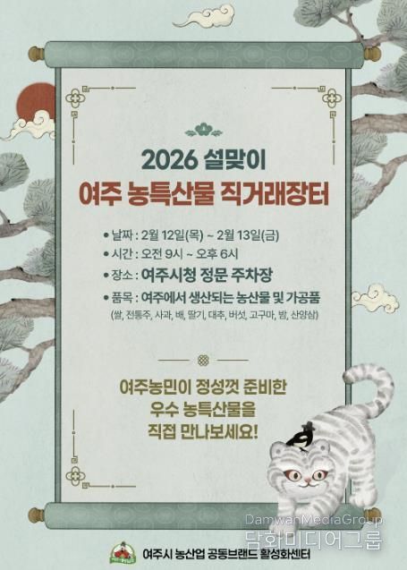 시민행정신문 강갑수 기자 | 여주시는 설 명절을 맞아 지역 농업인의 판로를 확대하고 시민들의 장바구니 부담을 줄이기 위해 오는 2월 12일부터 13일까지 이틀간 ‘2026 설맞이 여주 농특산물 직거래장터’를 개최한다.