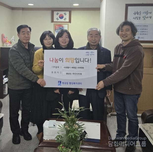 박영순 행궁동 주민자치회장은 “주민자치회가 지역사회의 일원으로서 이웃을 돕는 데 함께하고자 이번 기부를 결정했다”며 “앞으로도 행궁동을 위한 나눔과 상생의 활동을 지속해 나가겠다”고 말했다.