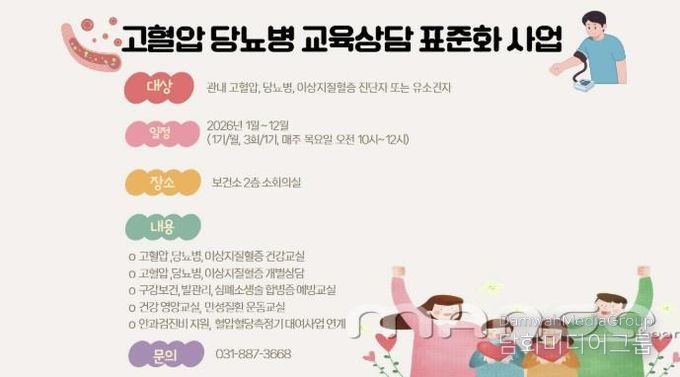 교육·상담 내용은 ▲고혈압·당뇨병의 원인과 관리 방법 ▲올바른 식생활 및 운동요법 ▲약물 복용 관리 ▲합병증 예방 등 실생활에 바로 적용할 수 있는 내용으로 구성되어 있으며, 개인별 건강 상태에 맞춘 1:1 맞춤형 상담을 통해 생활습관 개선을 적극 지원한다.