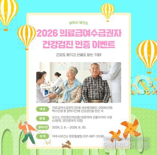 시민행정신문 기자 | 여주시보건소 건강증진과는 의료급여수급권자의 건강을 지키고 심뇌혈관질환을 예방하기 위해 2026년 6월 30일까지 건강검진을 완료한 분들을 대상으로 ‘건강꾸러미 제공 이벤트’를 진행한다.