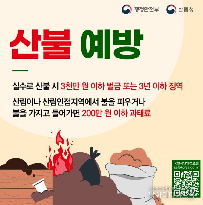 한편, 산림 또는 산림 인접지역에서의 불법 소각 행위는 '산림재난방지법'에 따라 200만 원 이하의 과태료가 부과되며, 과실로 산불을 발생시킨 경우에는 3년 이하의 징역 또는 3천만 원 이하의 벌금에 처해질 수 있다.수칙을 반드시 준수해 주시기를 당부드린다”며 “거제시는 산불 예방과 신속 대응을 위해 행정력을 집중하겠다”고 말했다.