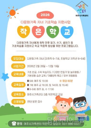 시민행정신문 강갑수 기자 | 여주시가족센터는 다문화가족 자녀 기초학습 지원사업 ‘작은학교’를 운영한다고 밝혔다.