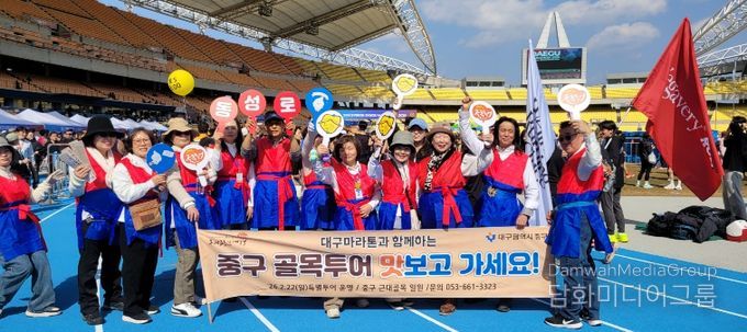 시민행정신문 장규호 기자 | 대구 중구는 지난 22일 대구스타디움 일원에서 열린 ‘2026 대구마라톤대회’ 현장에서 ‘근대로의 여행, 골목투어’ 홍보 캠페인을 운영하며 중구 원도심 관광의 매력을 널리 알렸다.