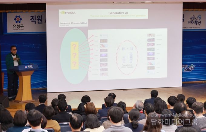 뇌과학과 인공지능(AI) 분야 권위자인 김대식 KAIST 전기·전자공학부 교수는 지난 27일 유성구청 직원 250여 명을 대상으로 ‘AGI 시장지배력의 시대’를 주제로 특강을 진행했다.