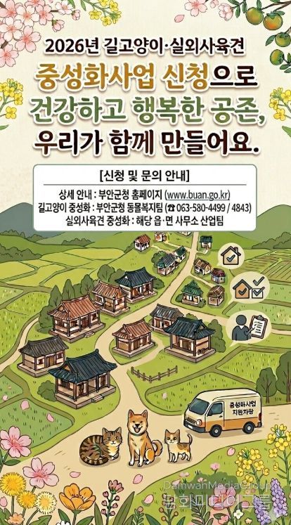 권오범 축산과장은 “중성화 사업을 지속적으로 추진해 무분별한 개체수 증가를 막고 유기동물 발생을 사전에 차단하겠다”며 “앞으로도 군민의 안전을 지키고 사람과 동물이 함께 편안하게 살 수 있는 환경을 만드는 데 최선을 다하겠다”고 말했다.