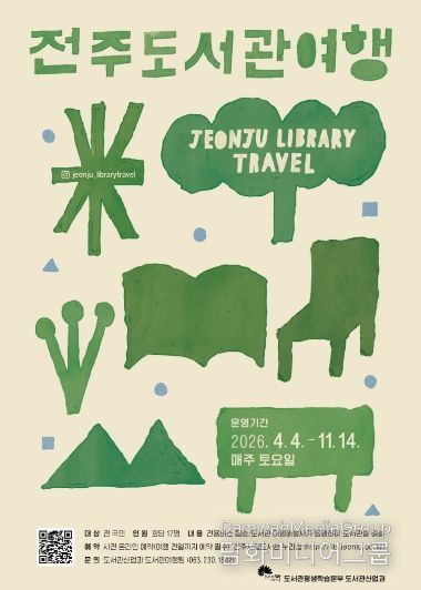 전주시는 오는 4월 4일부터 11월 14일까지 ‘2026년 전주 도서관 여행’ 프로그램을 운영할 계획이라고 3일 밝혔다.