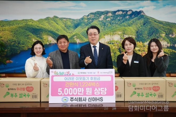시민행정신문 강갑수 기자 | 화순군은 4일 ㈜신아에이치에스(회장 정현석)가 관내 취약계층을 위해 5천만 원 상당의 간편식을 기탁했다고 밝혔다.