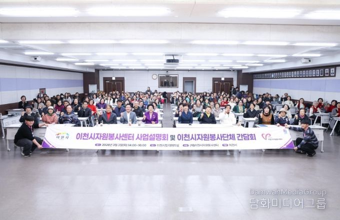 시민행정신문 강갑수 기자 | 이천시자원봉사센터는 3월 3일 시청 대회의실에서 김경희 이천시장, 박명서 이천시의회 의장을 비롯한 자원봉사자 180여 명이 참석한 가운데 ‘2026년도 사업설명회 및 자원봉사단체 간담회’를 개최했다.