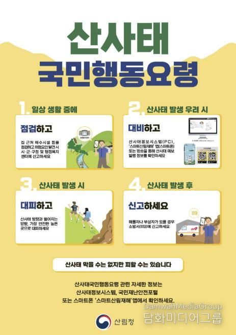 아울러 산사태취약지역 내 거주민과 인근 주민을 대상으로 산사태 국민 행동 요령을 홍보해 비상 상황 발생 시 신속한 대피가 이루어질 수 있도록 할 계획이다. 점검 결과 경미한 사항은 현장에서 즉시 조치하고, 산사태 발생 우려가 높은 구간은 정밀점검을 거쳐 보수·보강 등 필요한 조치를 순차적으로 추진한다.
