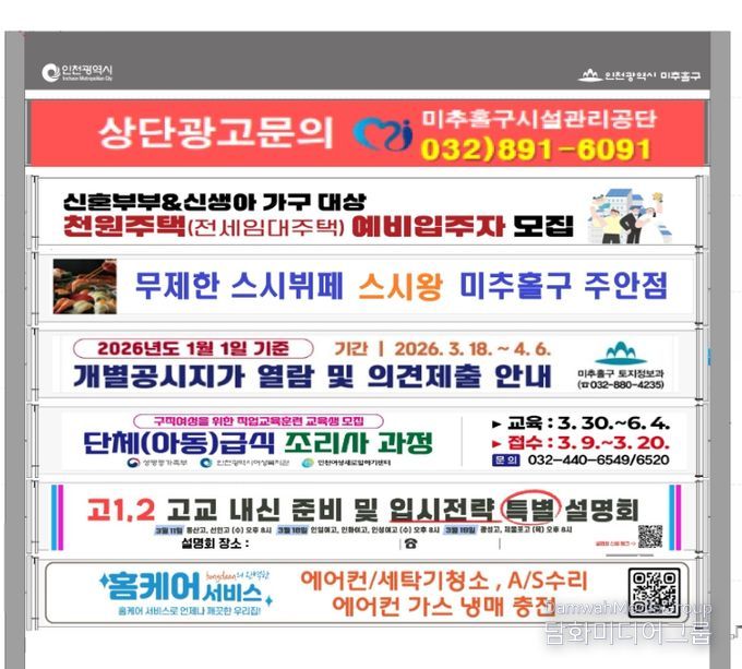 시민행정신문 강갑수 기자 | 인천 미추홀구가 현수막 게시대의 디자인 다양성을 확대하고 홍보 효과를 높이기 위해 ‘현수막 게시대 디자인 가이드라인’을 완화한다.
