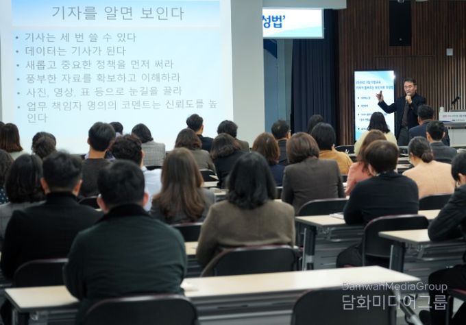 특히 김 기자는 기자들이 기사 작성 과정에서 중요하게 보는 요소로 구체적인 통계자료 제시와 간결한 문장 구성, 명확한 핵심 메시지 전달 등을 강조하며 보도자료의 기본 구성과 제목 작성 방법, 독자가 이해하기 쉬운 표현 방식 등을 사례 중심으로 설명해 참석자들의 큰 호응을 얻었다.