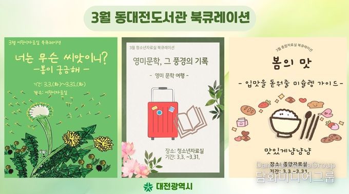 시민행정신문 강갑수 기자 | 동대전도서관은 3월 한 달간 도서관 각 자료실에서 주제별 북큐레이션 전시를 운영한다.