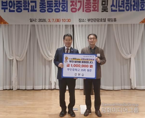 시민행정신문 강갑수 기자 | 부안군은 지난 7일 부안관광호텔에서 열린 부안중학교 총동창회 정기총회에서 35회 강현갑 동문이 고향사랑기부금 100만원을 기탁했다고 밝혔다.