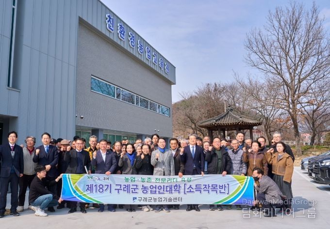 시민행정신문 강갑수 기자 | 전남 구례군은 지난 5일 친환경농업교육관에서 교육생과 관계자 등 50여명이 참석한 가운데 지역 농업인의 소득 증대와 전문 역량 강화를 위한 ‘2026년 제18기 구례군 농업인대학 소득작목반 개강식’을 개최했다고 밝혔다.