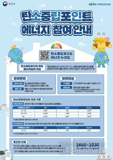탄소중립포인트제(에너지 분야)는 가정 상가 등에서 전기, 도시가스, 상수도 사용량을 최근 2년 평균보다 5% 이상 절감하면 감축률에 따라 인센티브를 지급하는 전 국민 온실가스 감축제도이다.