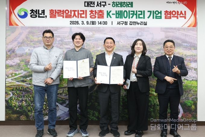 시민행정신문 강갑수 기자 | 대전 서구는 청년활력일자리창출 11번째 협약 기업으로 지역 대표 K-베이커리 하레하레(대표 이창민)를 선정하고 ‘2026년 청년 활력 일자리 창출’을 위한 업무협약을 체결했다고 10일 밝혔다.