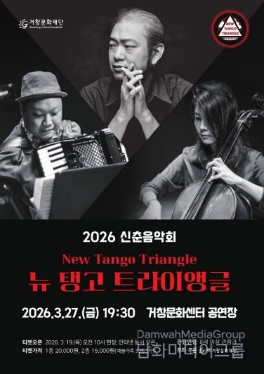 시민행정신문 기자 | (재)거창문화재단(이사장 구인모 거창군수)은 오는 27일 오후 7시 30분, 거창문화센터 공연장에서 봄을 맞이하는 신춘음악회 ‘뉴 탱고 트라이앵글(New Tango Triangle)’을 개최한다.