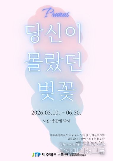 제주테크노파크(원장 지영흔, 제주TP) 청정바이오사업본부 생물종다양성연구소는 오는 6월 30일까지 서귀포시 남원읍 생물종다양성연구소 1층 홍보관에서 제주 자생 벚나무의 생태적 가치를 조명하는 ‘당신이 몰랐던 벚꽃’ 사진전을 개최한다고 10일 밝혔다.