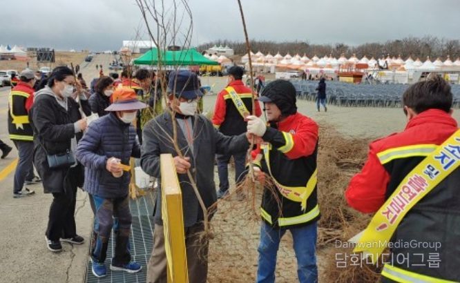 묘목 나눔은 ‘새봄, 새희망’을 상징하는 행사로, 시민들의 건강과 풍요를 기원하는 동시에 나무심기 시민 참여 분위기를 확산하기 위한 취지로 마련됐다.