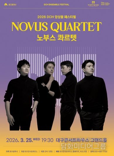 시민행정신문 기자 | 대구콘서트하우스(관장 박창근)가 선보이는 ‘2026 DCH 앙상블 페스티벌’의 대미를 장식할 하이라이트 무대가 찾아온다. 세계적인 현악사중주단 ‘노부스 콰르텟(Novus Quartet)’의 공연이 오는 3월 25일 오후 7시 30분 대구콘서트하우스 그랜드홀에서 열린다.