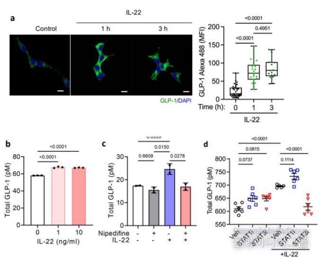 논문은 'Intestinal interleukin-22 enhances GLP-1 production via the STAT3 pathway to improve glucose homeostasis during high-fat diet induced obesity in a study with male mice'제목으로 지난 2월 21일 게재됐다.