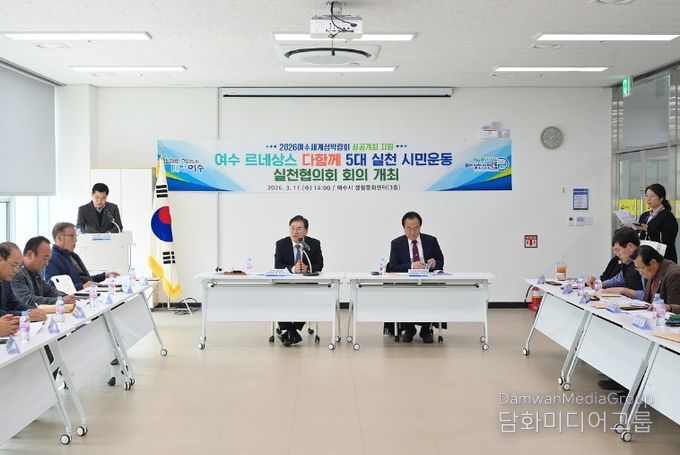 시민행정신문 강갑수 기자 | 여수시는 지난 11일 생활문화센터에서 ‘여수 르네상스 다함께 5대 실천 시민운동’ 실천협의회 2026년 첫 정기회의를 개최하고 2026여수세계섬박람회 성공개최를 위한 시민 참여 확대 방안을 논의했다고 밝혔다.