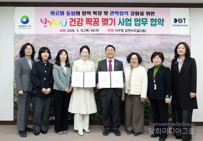 시민행정신문 기자 | 대전 서구는 12일 구청 갑천누리실에서 대전과학기술대학교 혁신지원사업단(단장 양진영)과 의료급여 특화사업인 ‘반가워U 건강짝꿍 맺기’ 추진을 위한 업무 협약을 맺었다.
