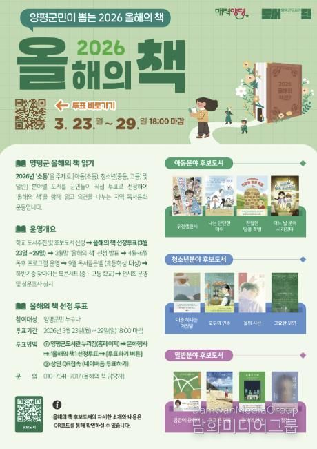 시민행정신문 강갑수 기자 | 양평군은 지역 주민과 함께 한 권의 책을 읽고 공감하는 독서문화 확산을 위해 2026년 ‘올해의 책’ 후보 도서를 선정하고 군민 투표를 실시한다고 밝혔다.