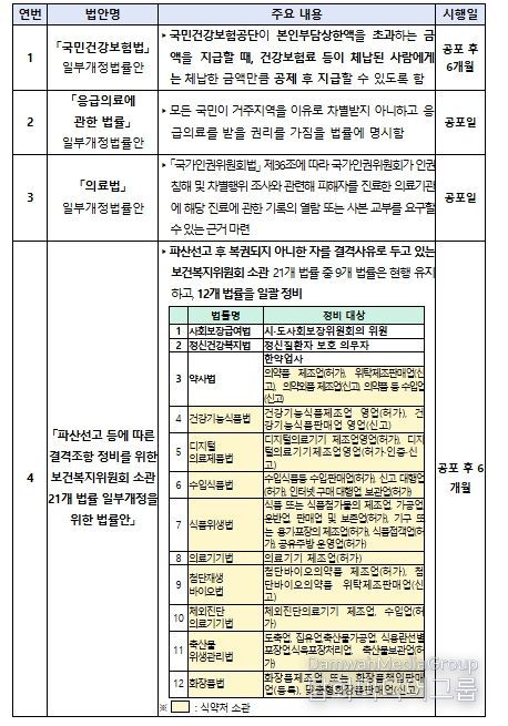 시민행정신문 이존영 기자 | 보건복지부는 3월 12일 제433회 국회(임시회) 본회의에서 '국민건강보험법'·'응급의료에 관한 법률'·'의료법' 일부개정법률안, '파산선고 등에 따른 결격조항 정비를 위한 보건복지위원회 소관 21개 법률 일부개정을 위한 법률안' 등 보건복지부 소관 4개 법률안이 의결됐다고 밝혔다.