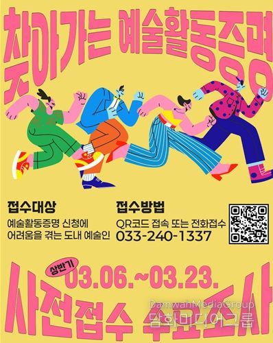 시민행정신문 강갑수 기자 | 강원문화재단은 도내 예술인의 복지 제도 접근성을 높이기 위한 ‘2026년 상반기 예술활동증명 등록지원 서비스’ 사전접수를 23일(월)까지 진행한다.