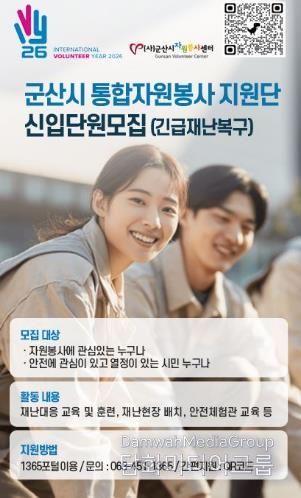 시민행정신문 강갑수 기자 | 군산시자원봉사센터는 각종 자연·사회 재난 발생 시 신속하고 체계적인 현장 지원을 위해 ‘통합자원봉사지원단’을 오는 4월 26일까지 모집한다고 밝혔다.