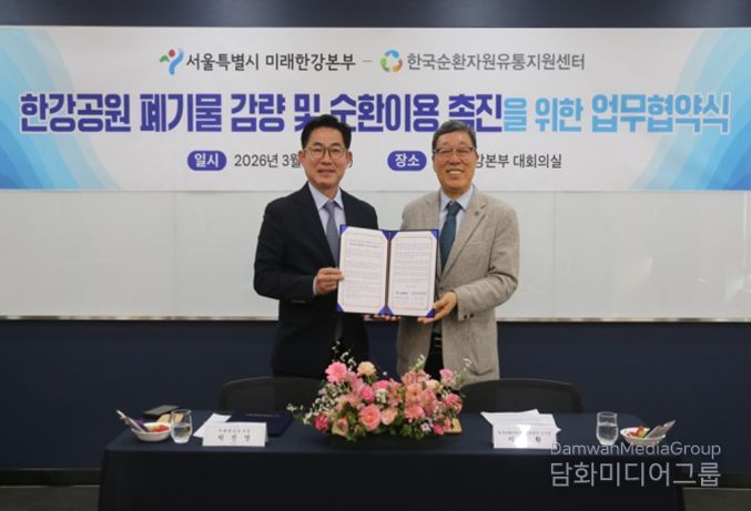 시민행정신문 김학영 기자 | 서울시 미래한강본부가 12일 한강공원 내 폐기물 감량 및 순환이용 촉진을 위해 폐기물 재활용 분야 전문기관인 한국순환자원유통지원센터(KOrea Resource circulation service Agency, KORA)와 업무협약을 체결했다.