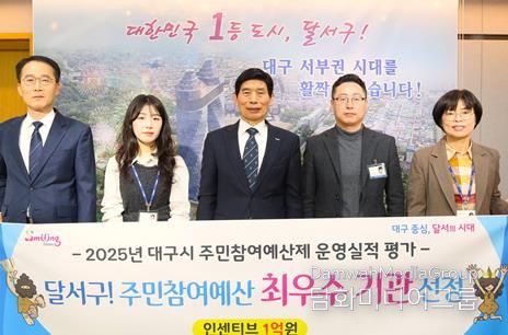 시민행정신문 강갑수 기자 | 대구 달서구가 대구시가 실시한 2025년 주민참여예산제 구·군 운영실적 평가에서‘최우수 기관’으로 선정돼 인센티브 1억 원을 확보했다.