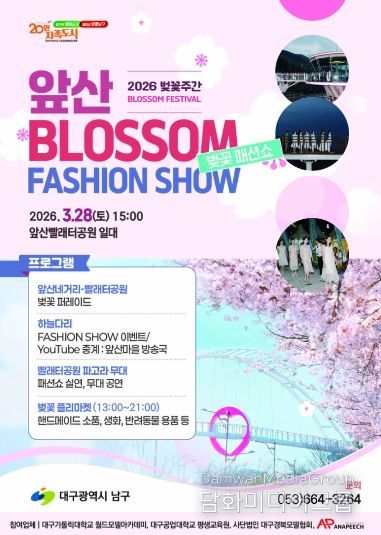 시민행정신문 기자 | 대구 남구는 오는 3월 28일 지역의 대표 관광명소인 앞산빨래터공원에서 벚꽃패션쇼 이벤트를 개최한다고 밝혔다.