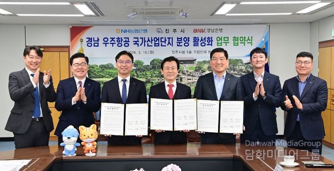 시민행정신문 강갑수 기자 | 진주시는 16일 시청 기업인의 방에서 NH농협은행, BNK경남은행과 ‘경남 우주항공 국가산업단지 분양 활성화’를 위한 업무협약을 체결했다고 밝혔다.