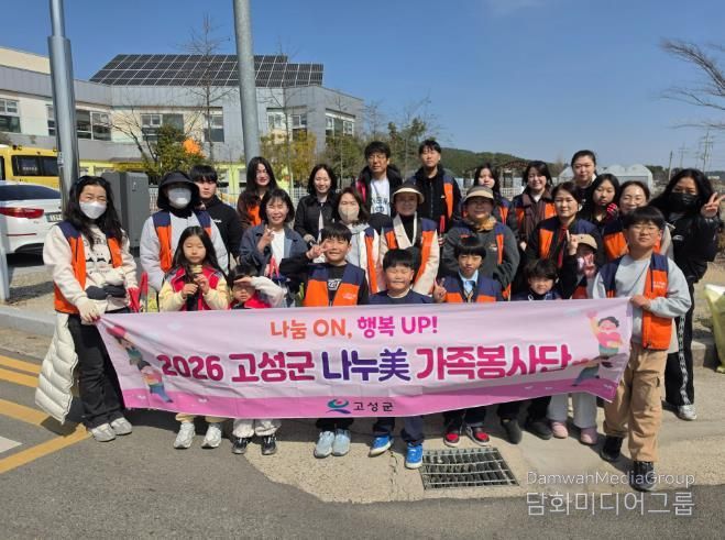 이번 활동은 율천초등학교 주변 도로와 고성군농업기술센터 일원에서 진행됐으며, 나누美가족봉사단 회원 35여 명이 참여했다.