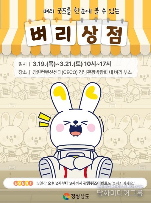 시민행정신문 기자 | 경상남도는 3월 19일부터 21일까지 3일간 창원컨벤션센터(CECO)에서 열리는 ‘2026 경남관광박람회’에 참가해 도 홍보캐릭터 ‘벼리’를 주인공으로 한 팝업스토어 ‘벼리 상점’을 선보인다.