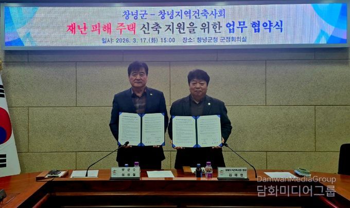 시민행정신문 강갑수 기자 | 창녕군과 창녕지역건축사회(회장 김태헌)는 지난 17일 군청 군정회의실에서 ‘재난 피해 주택 신축 지원 업무협약’을 체결했다고 밝혔다.